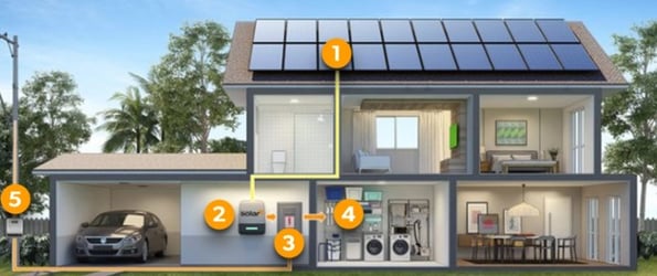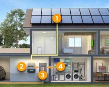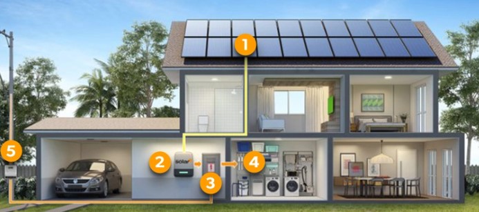 3.A energia processada (CA) alimenta o estabelecimento/ residência.